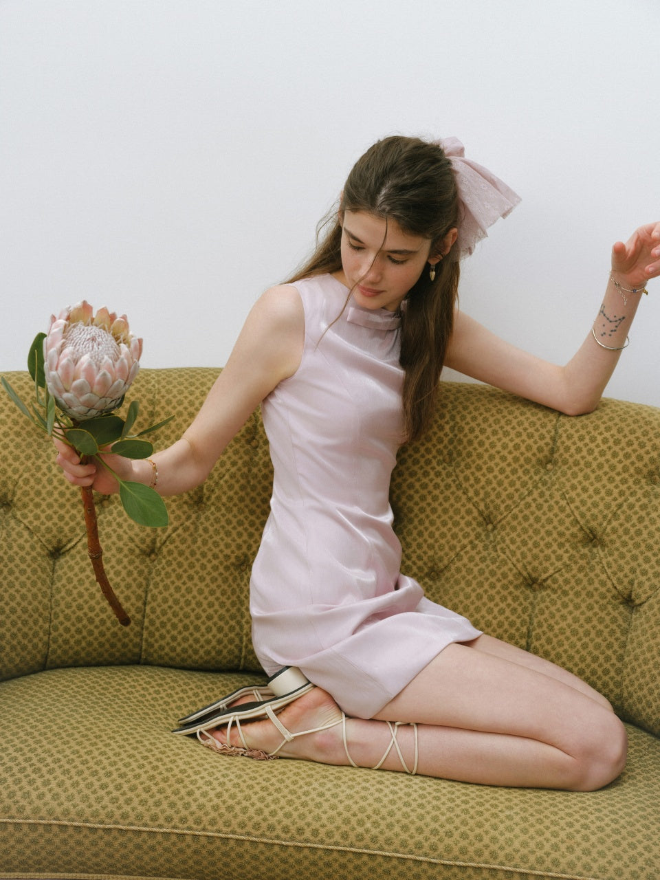 Glossy Bow Mini Dress